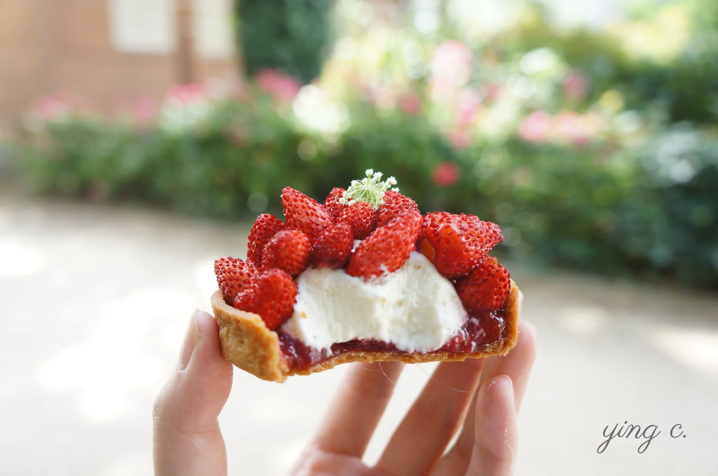 開始從事法式甜點相關寫作之後,拍下甜點的斷面圖並詳細記錄其結構組成,已經變成我的直覺反應之一。圖中是Des Gâteaux et du Pain的「Fragaria Vesca」繡線菊野莓塔。