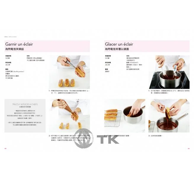 這本書延續了Ferrandi出版品一致的嚴謹編輯邏輯與品質,在呈現方式上也秉持著一貫的詳實細緻,包括130個專業技巧的步驟圖文詳解,更有經典法式甜點食譜與主廚提供的訣竅。每一種甜點都有三種層次與難度的變化,在最具挑戰性的食譜中,有數十位當今法國最具知名度的甜點主廚(其中有許多正是Ferrandi校友!)與MOF(法國最佳工藝職人)等分享他們的私房食譜,這樣的黃金陣容大概也只有號稱為「甜點界哈佛」的Ferrandi能辦到。