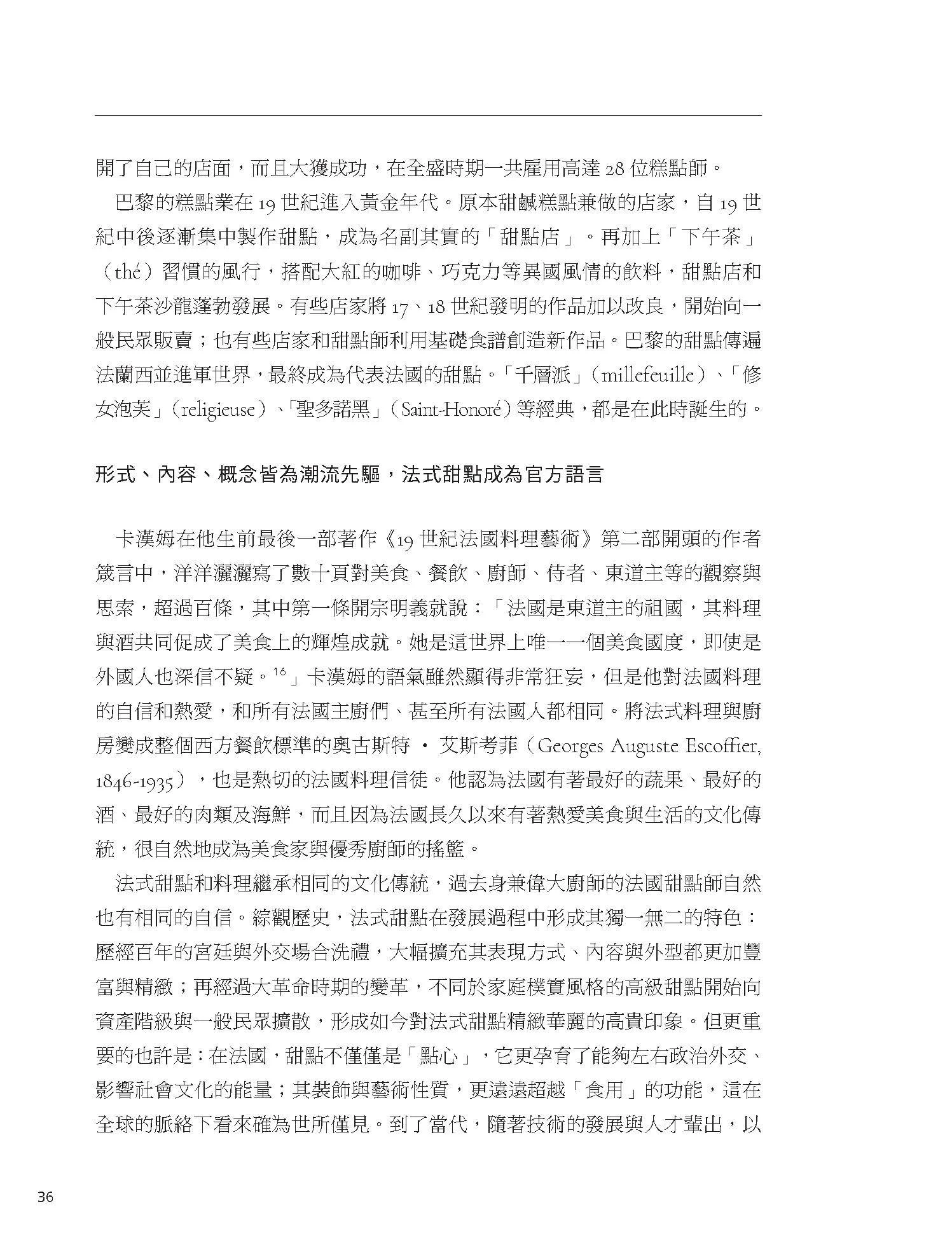 「這無疑是一部法式甜點全書,將法式甜點為何得能在全球餐飲世界裡,凌駕地域與類別之限,和法式fine dining一樣,擁有無可挑戰、取代,且是人人痴迷愛戴的極致地位的背景緣由原因,抽絲剝繭、翔實完整交代。」——葉怡蘭(飲食生活作家、《Yilan美食生活玩家》網站創辦人)