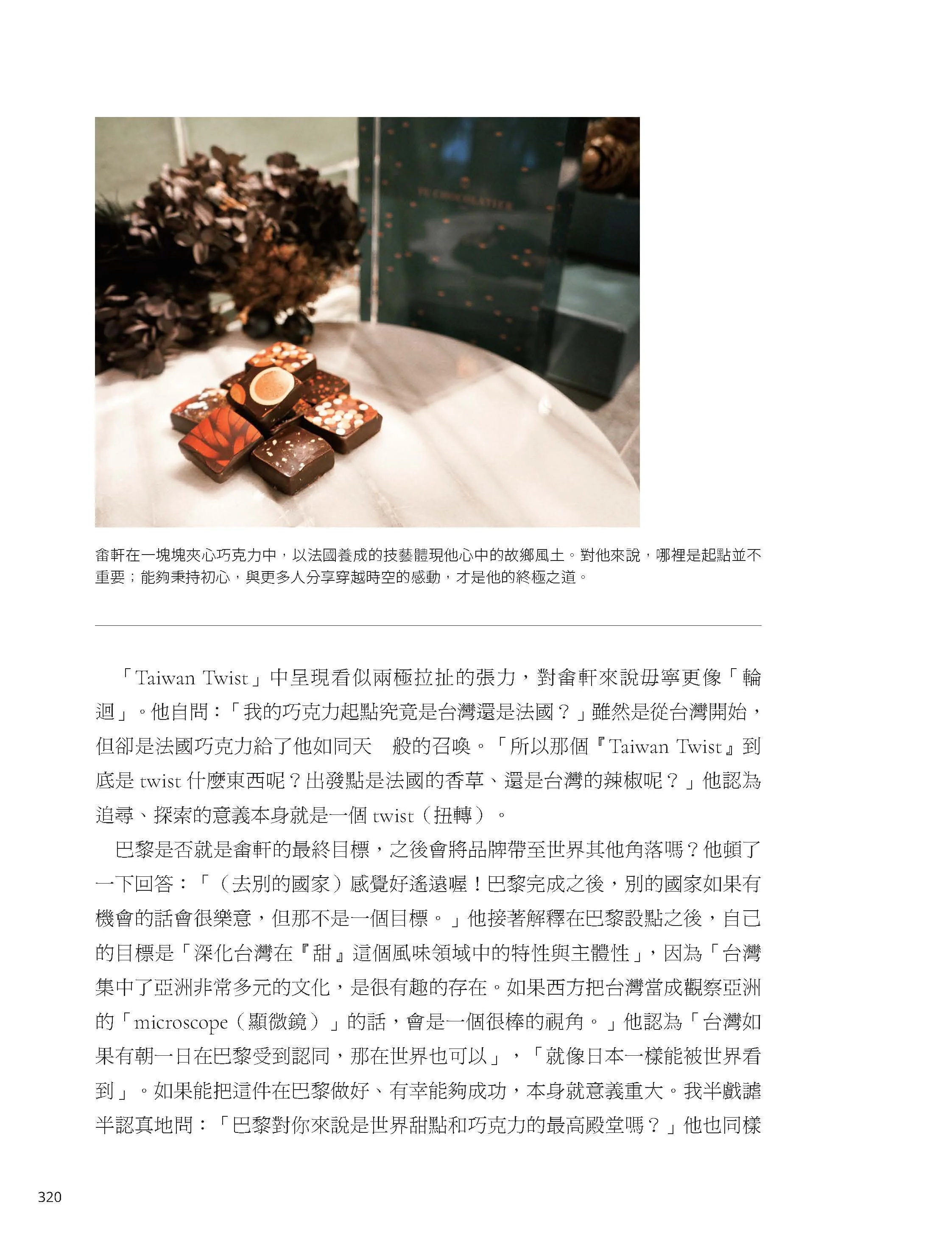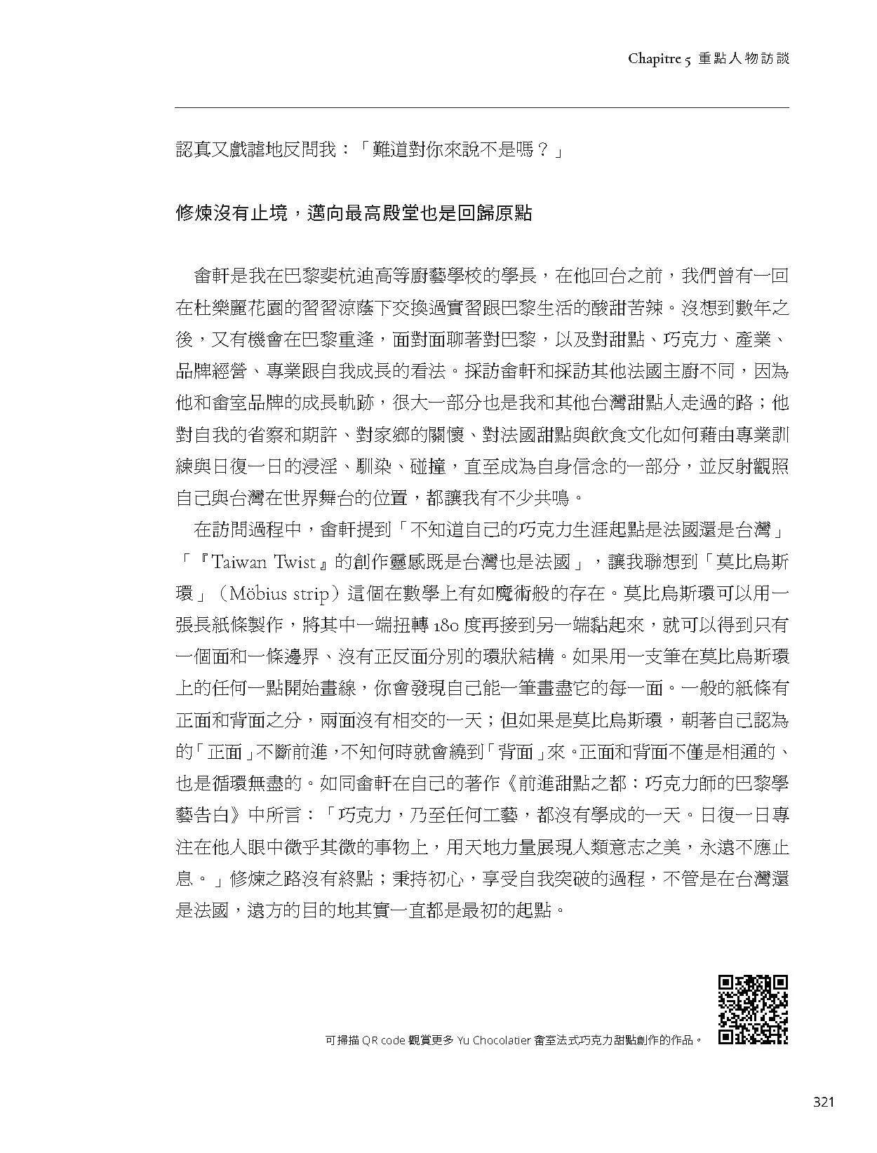 「書中集結許多法國當今甜點界重量級的人物訪談,能讓讀者一窺創作者的精神世界。在這些對話中,我們再次被提醒,甜點亦有食譜操作之外的意義。它承載了無數的記憶與感情,最後為眾人編織成了文化。」——鄭畬軒(Yu Chocolatier畬室法式巧克力甜點創作主廚)